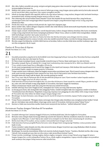 21:19 Paulus memberi salam kepada mereka, lalu menceriterakan dengan terperinci apa yang dilakukan Allah di antara