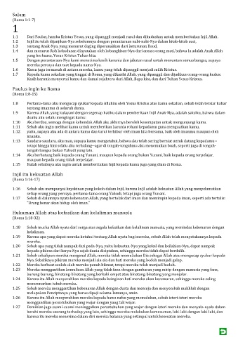 1:1 Dari Paulus, hamba Kristus Yesus, yang dipanggil menjadi rasul dan dikuduskan untuk memberitakan Injil Allah.