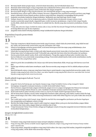 13:10 Kasih tidak berbuat jahat terhadap sesama manusia, karena itu kasih adalah kegenapan hukum Taurat.