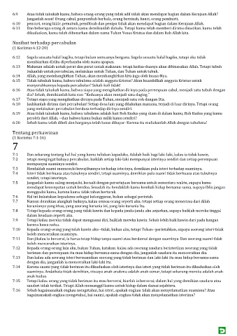 7:2 tetapi mengingat bahaya percabulan, baiklah setiap laki-laki mempunyai isterinya sendiri dan setiap perempuan