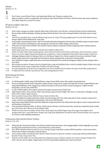 1:6 yang sudah sampai kepada kamu. Injil itu berbuah dan berkembang di seluruh dunia, demikian juga di antara kamu