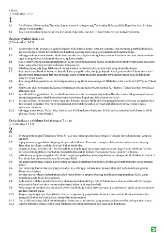 1:1 Dari Paulus, Silwanus dan Timotius, kepada jemaat orang-orang Tesalonika di dalam Allah Bapa kita dan di dalam