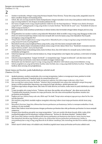 2:1 Saudara-saudaraku, sebagai orang yang beriman kepada Yesus Kristus, Tuhan kita yang mulia, janganlah iman itu