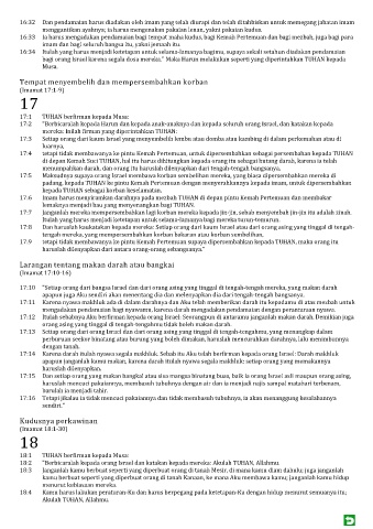 17:4 tetapi tidak membawanya ke pintu Kemah Pertemuan, untuk dipersembahkan sebagai persembahan kepada TUHAN