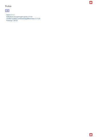 Yudas Salam 1:1-2 Hukuman atas guru-guru palsu 1:3-16 Nasihat-nasihat untuk meneguhkan iman 1:17-23 Penutup 1:24-25