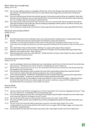 18:23 Dan cahaya lampu tidak akan bersinar lagi di dalammu, dan suara mempelai laki-laki dan pengantin perempuan