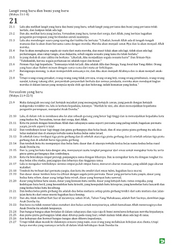 21:22 Dan aku tidak melihat Bait Suci di dalamnya; sebab Allah, Tuhan Yang Mahakuasa, adalah Bait Sucinya, demikian juga