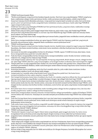 23:2 "Berbicaralah kepada orang Israel dan katakan kepada mereka: Hari-hari raya yang ditetapkan TUHAN yang harus