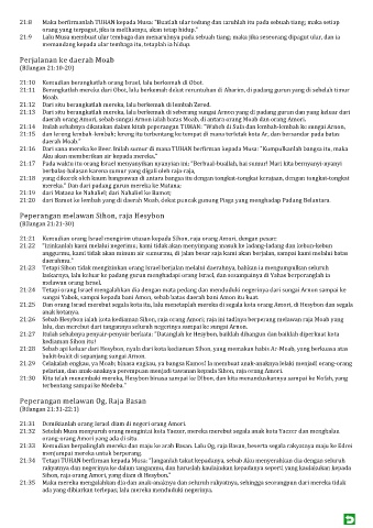 21:32 Setelah Musa menyuruh orang mengintai kota Yaezer, mereka merebut segala anak kota Yaezer dan menghalau