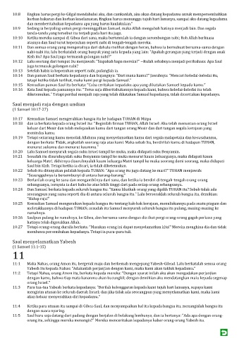 10:25 Kemudian Samuel menguraikan kepada bangsa itu tentang hak-hak kerajaan, menuliskannya pada suatu piagam dan