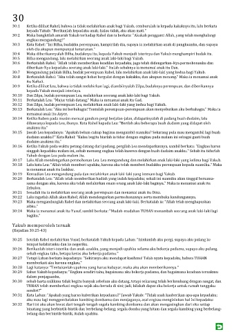 30:32 Hari ini aku akan lewat dari tengah-tengah segala kambing dombamu dan akan mengasingkan dari situ setiap