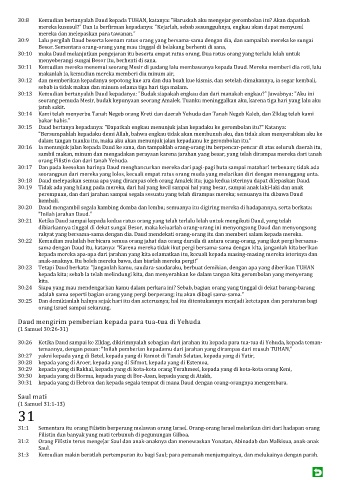 30:26 Ketika Daud sampai ke Ziklag, dikirimnyalah sebagian dari jarahan itu kepada para tua-tua di Yehuda, kepada teman-