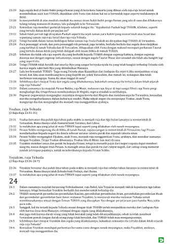 23:28 Selebihnya dari riwayat Yosia dan segala yang dilakukannya, bukankah semuanya itu tertulis dalam kitab sejarah