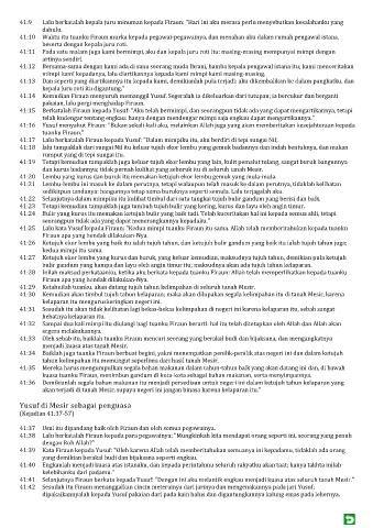 41:33 Oleh sebab itu, baiklah tuanku Firaun mencari seorang yang berakal budi dan bijaksana, dan mengangkatnya