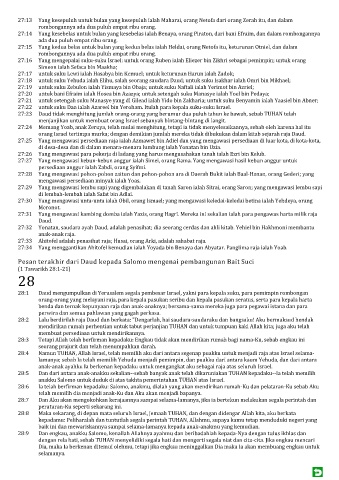 27:17 untuk suku Lewi ialah Hasabya bin Kemuel; untuk keturunan Harun ialah Zadok;