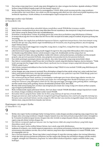 ke Yerusalem hendak menguji Salomo dengan teka-teki. Setelah ia sampai kepada Salomo, dipercakapkannyalah