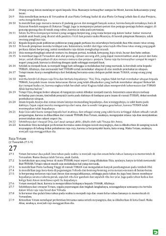 27:7 Selebihnya dari riwayat Yotam, segala peperangan dan tingkah langkahnya, sesungguhnya semuanya itu tertulis