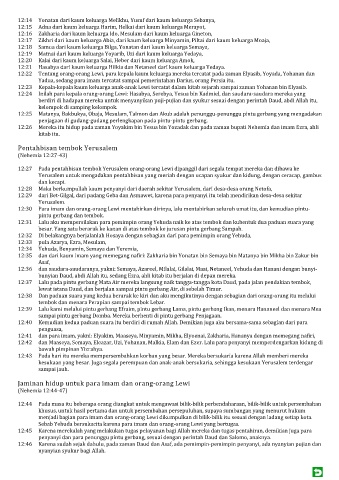 12:30 Para imam dan orang-orang Lewi mentahirkan dirinya, lalu mentahirkan seluruh umat itu, dan kemudian pintu-