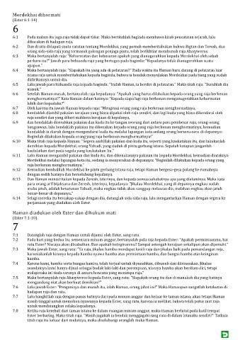 demikian kepada Mordekhai, orang Yahudi, yang duduk di pintu gerbang istana. Sepatah katapun janganlah