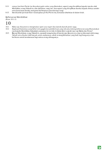 9:31 supaya hari-hari Purim itu dirayakan pada waktu yang ditentukan, seperti yang diwajibkan kepada mereka oleh