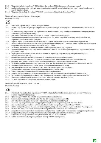 25:21 Ketulusan dan kejujuran kiranya mengawal aku, sebab aku menanti-nantikan Engkau.