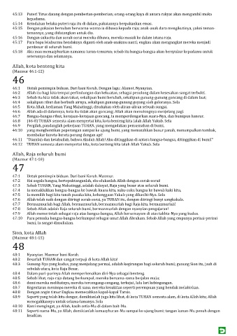 45:18 Aku mau memasyhurkan namamu turun-temurun; sebab itu bangsa-bangsa akan bersyukur kepadamu untuk