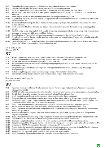 88:1 Nyanyian. Mazmur bani Korah. Untuk pemimpin biduan. Menurut lagu: Mahalat Leanot. Nyanyian pengajaran
