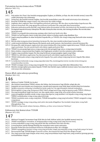 146:10 TUHAN itu Raja untuk selama-lamanya, Allahmu, ya Sion, turun-temurun! Haleluya!