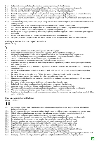 8:34 Berbahagialah orang yang mendengarkan daku, yang setiap hari menunggu pada pintuku, yang menjaga tiang pintu