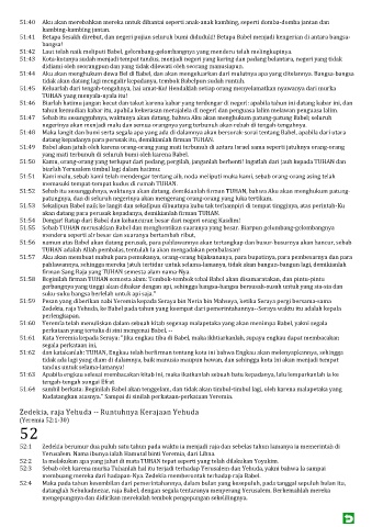 52:1 Zedekia berumur dua puluh satu tahun pada waktu ia menjadi raja dan sebelas tahun lamanya ia memerintah di