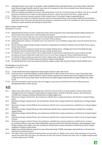 47:21 "Tanah inilah kamu harus bagi-bagi di antara kamu menurut suku-suku Israel.