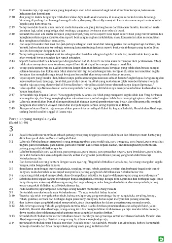 2:49 Atas permintaan Daniel, raja menyerahkan pemerintahan wilayah Babel itu kepada Sadrakh, Mesakh dan Abednego,