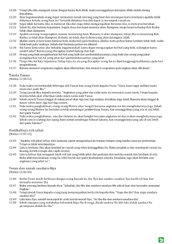 12:49 Lalu kata-Nya, sambil menunjuk ke arah murid-murid-Nya: "Ini ibu-Ku dan saudara-saudara-Ku!