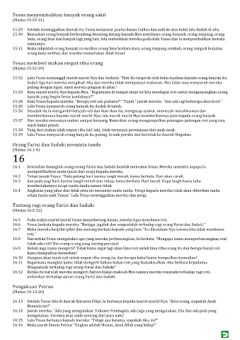 16:12 Ketika itu barulah mereka mengerti bahwa bukan maksud-Nya supaya mereka waspada terhadap ragi roti,