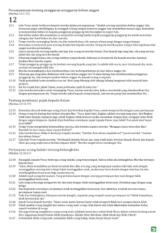 12:1 Lalu Yesus mulai berbicara kepada mereka dalam perumpamaan: "Adalah seorang membuka kebun anggur dan