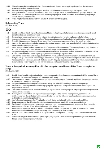 16:15 Lalu Ia berkata kepada mereka: "Pergilah ke seluruh dunia, beritakanlah Injil kepada segala makhluk.