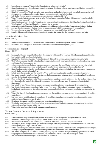 4:31 Kemudian Yesus pergi ke Kapernaum, sebuah kota di Galilea, lalu mengajar di situ pada hari-hari Sabat.