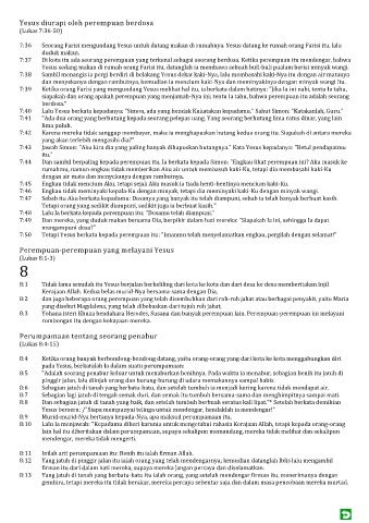 7:43 Jawab Simon: "Aku kira dia yang paling banyak dihapuskan hutangnya." Kata Yesus kepadanya: "Betul pendapatmu