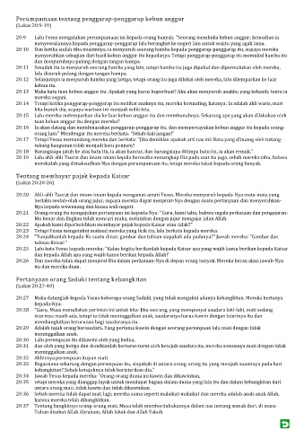 20:27 Maka datanglah kepada Yesus beberapa orang Saduki, yang tidak mengakui adanya kebangkitan. Mereka bertanya