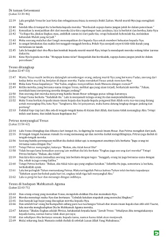 22:53 Padahal tiap-tiap hari Aku ada di tengah-tengah kamu di dalam Bait Allah, dan kamu tidak menangkap Aku. Tetapi