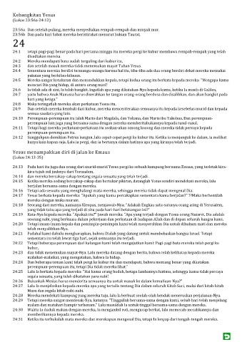 24:27 Lalu Ia menjelaskan kepada mereka apa yang tertulis tentang Dia dalam seluruh Kitab Suci, mulai dari kitab-kitab