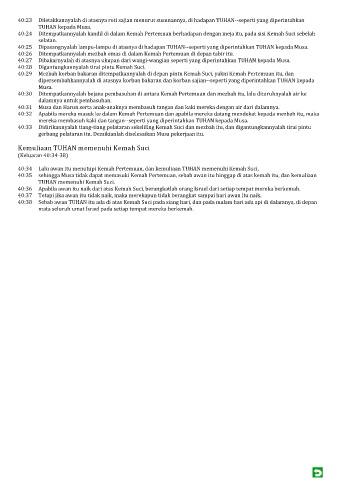40:32 Apabila mereka masuk ke dalam Kemah Pertemuan dan apabila mereka datang mendekat kepada mezbah itu, maka