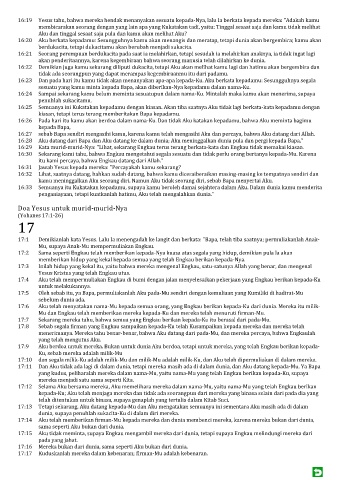 16:25 Semuanya ini Kukatakan kepadamu dengan kiasan. Akan tiba saatnya Aku tidak lagi berkata-kata kepadamu dengan