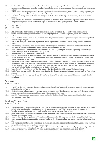 19:16 Akhirnya Pilatus menyerahkan Yesus kepada mereka untuk disalibkan. (19-16b) Mereka menerima Yesus.