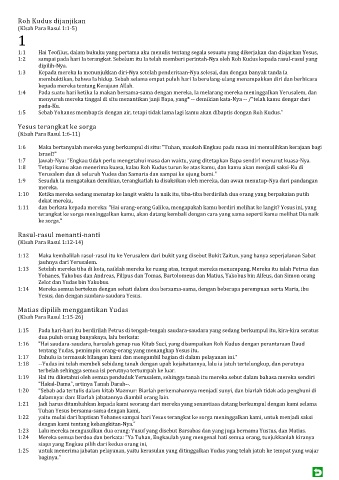 1:2 sampai pada hari Ia terangkat. Sebelum itu Ia telah memberi perintah-Nya oleh Roh Kudus kepada rasul-rasul yang