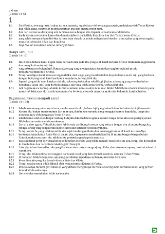 1:1 Dari Paulus, seorang rasul, bukan karena manusia, juga bukan oleh seorang manusia, melainkan oleh Yesus Kristus