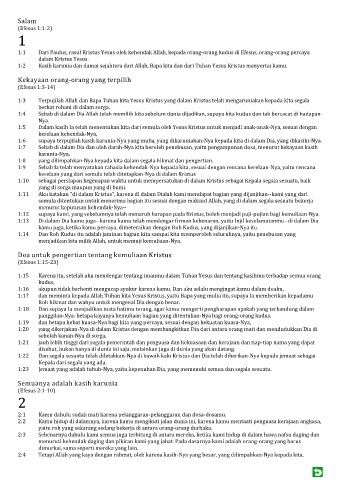 1:1 Dari Paulus, rasul Kristus Yesus oleh kehendak Allah, kepada orang-orang kudus di Efesus, orang-orang percaya