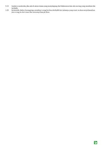 5:20 ketahuilah, bahwa barangsiapa membuat orang berdosa berbalik dari jalannya yang sesat, ia akan menyelamatkan