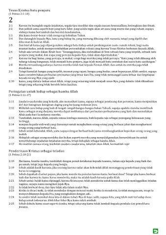 2:21 Sebab untuk itulah kamu dipanggil, karena Kristuspun telah menderita untuk kamu dan telah meninggalkan teladan