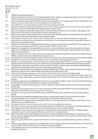 27:13 Dan jikalau orang itu mau menebusnya juga, ia harus menambahkan seperlima kepada nilai itu.